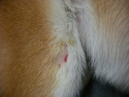 大腿的地方最嚴重了,麻咪有幫牠塗上碘酒
