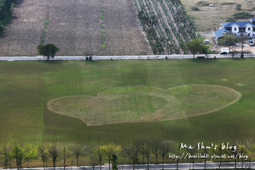 跳飛行傘的下方還有愛心形狀的草皮耶~